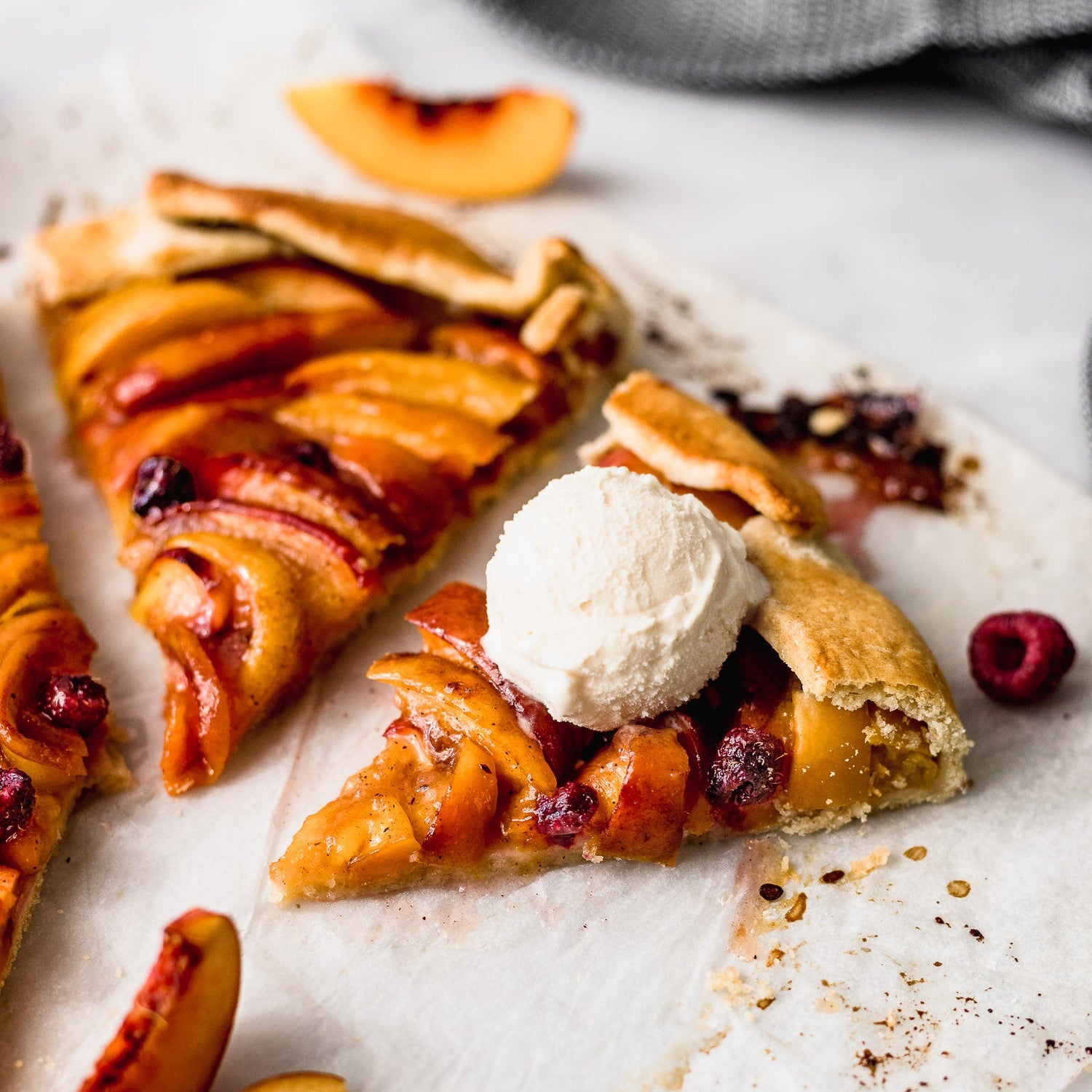 Coloca los duraznos encima, dejando bordes libres si es rústica.